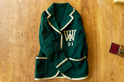 This jacket once belonged to IWU student, Helen Worner Clauser (Class of 1931). This letter jacket was also known as the "Senior Jacket".