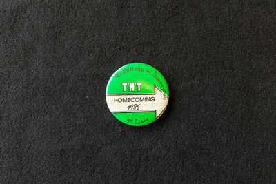 This button dates back to IWU's 1986 Homecoming festivities, which boasted a T'N'T theme titled "Traditions 'n' Tomorrows".