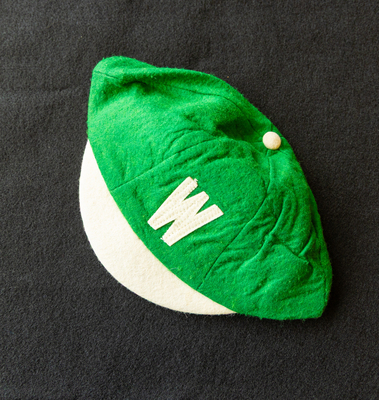 This freshman beanie was worn by George Vinyard (Class of 1971) during his first year on campus in 1967-68. The tradition of freshmen wearing beanies in their first weeks as college students began to fade away around this time before disappearing in the mid-1970s.