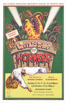 This program for the 2001 IWU School of Theatre Arts production of Little Shop of Horrors demonstrates one show with a set design led by Curtis Trout, emeritus professor of scenic design.